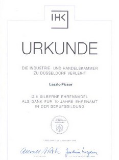 1998. november 2-án Ficsor László ügyvezető igazgató és Dr. Hauszmann János akadémiai tanácsos a düsseldorfi Hotel Nikko szállodában a magyar állami fordító- és tolmácsvizsga bizottságban kifejtett, hosszú évekig tartó munkájuk elismeréseként a Düsseldorfi Ipari és Kereskedelmi Kamara állami kitüntetésében részesültek.