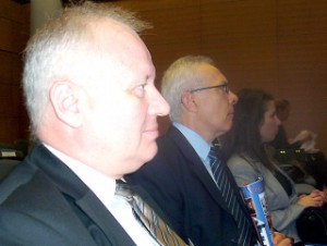 Ficsor László, Prof. Dr. Bod Péter Ákos, volt pénzügyminiszter és a Magyar Nemzeti Bank elnöke, valamint Dr. Varga Marianna, a Köztársasági Elnöki Hivatal osztályvezetője 2014. szeptemberében a Magyar-Német Fórumon Budapesten.