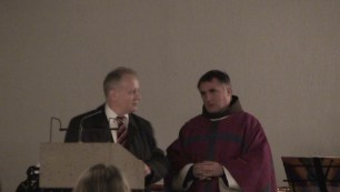 Ficsor László és Böjte Csaba ferences testvér, a Dévai Gyermekek Alapítvány iniciátora Duisburgban a Karmeliták templomában.