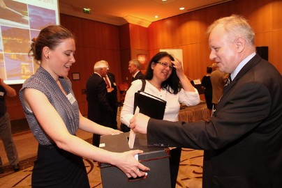 Ficsor László a Német-Magyar ipari és Kereskedelmi Kamara elnökségének választásán adja le a szavazatát.